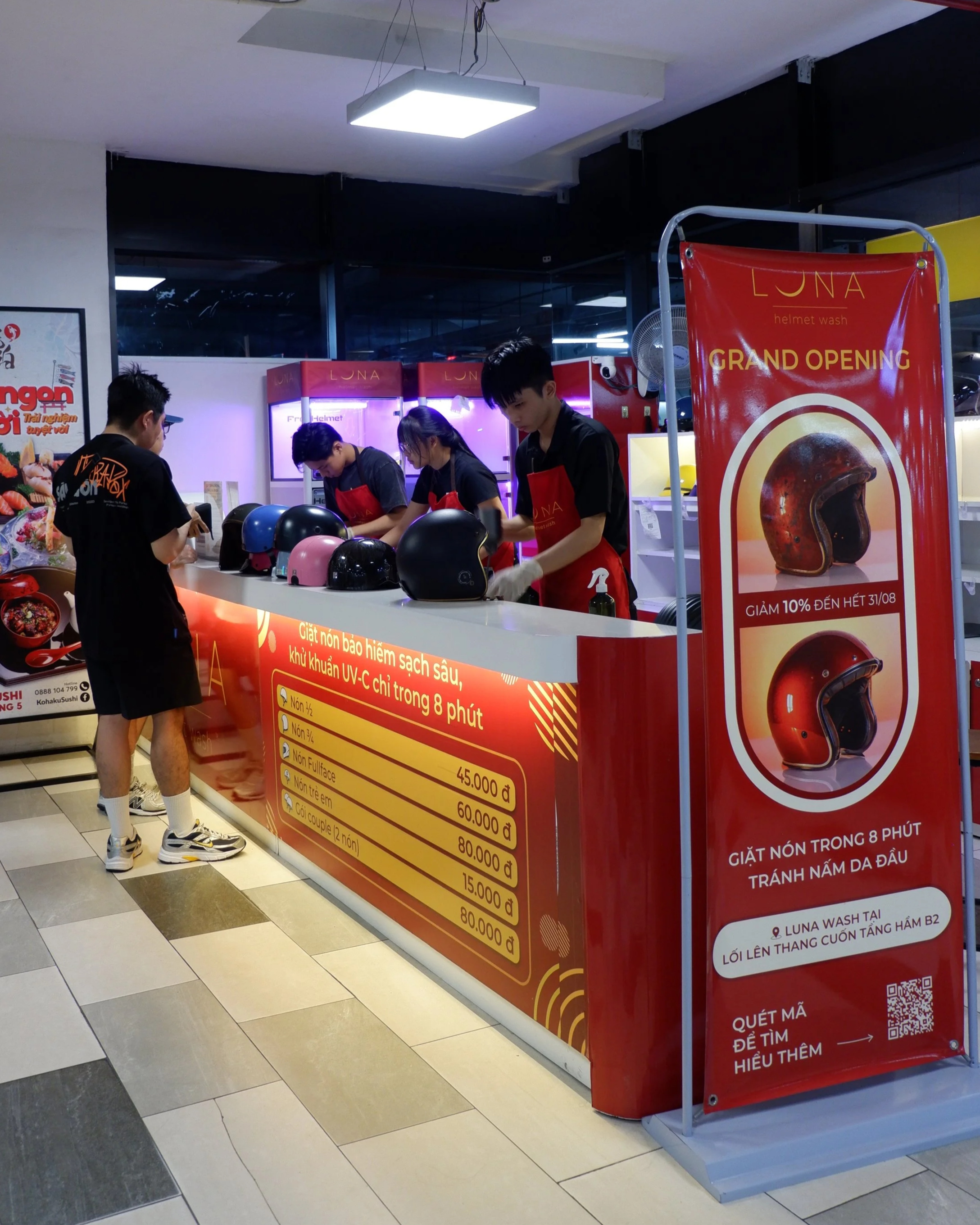 Chỉ cần gửi nón – đi mua sắm – quay lại nhận nón sạch thơm trong vòng vài phút.